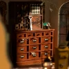 DIY Miniature House Kit: Kiki’s Magic Emporium with LED Lights by Hands Craft. Perfect for birthdays, a crafting hobby project, or home or office decor. Includes glue, tweezer, wiring, LED lights, battery box, and all pieces required to build.